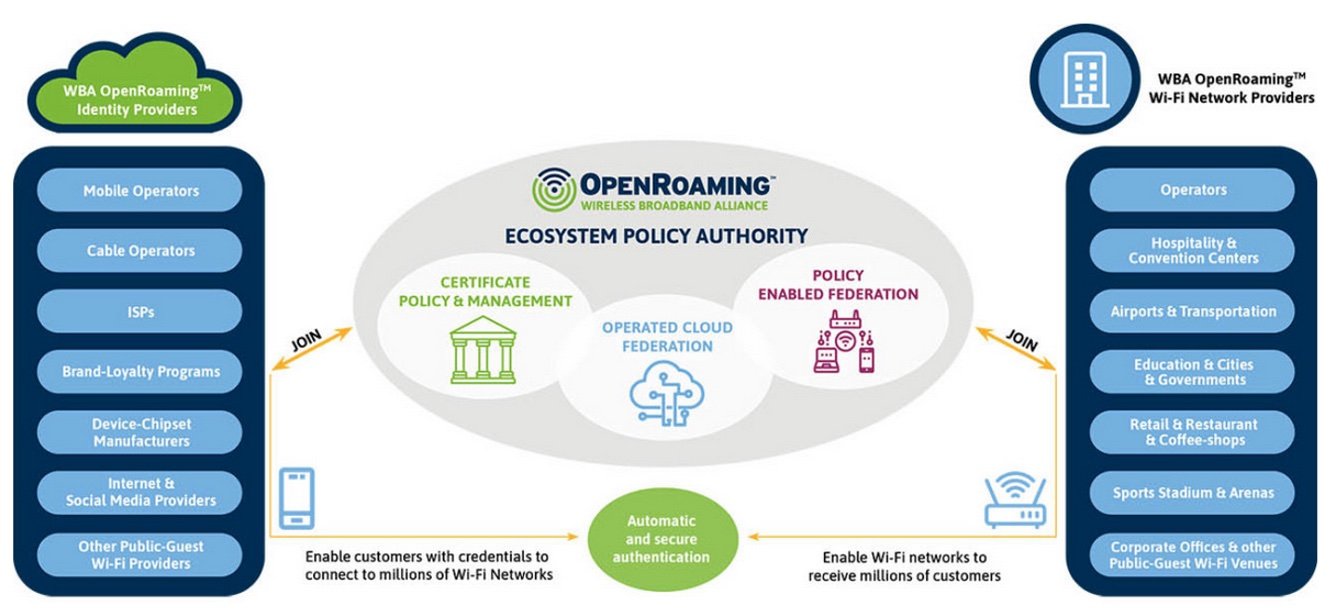 • Ein Zusammenschluss von Netzwerken und Identitäts-Providern, der automatisches Roaming und Benutzerintegration über WiFi-Netze ermöglicht. Das System basiert auf den WBA-Standards für Wireless Roaming Intermediary eXchange (WRIX), die verschiedene Geschäftsmodelle in einem integrierten Framework vereinen.