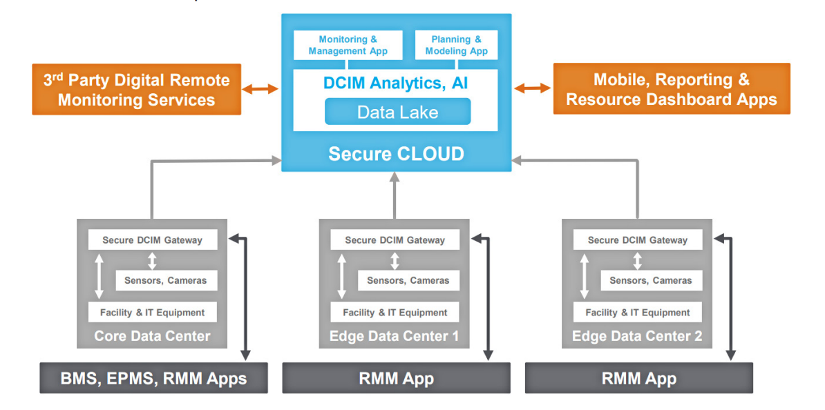 1. Use cloud technologies for easier deployment, expansion, analysis, and maintenance. By hosting the DCIM server in the cloud, deployment will be simpler and faster, eliminating the need to purchase a new server for each site. In other words, next-generation DCIM systems are installed as a simple gateway application on an existing server (physical or virtual). And because each site would require a separate DCIM server using traditional solutions, these time savings can be significant when there are dozens or hundreds of small remote sites. This also makes advanced DCIM systems highly scalable, being able to handle an unlimited number of monitored devices at any number of sites.