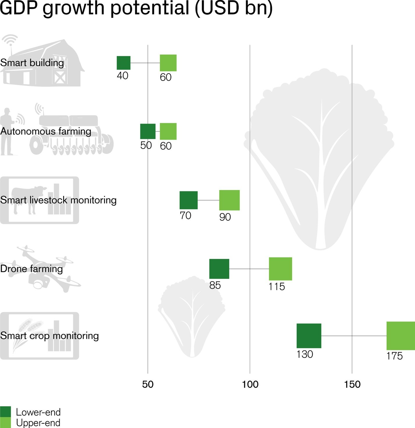 Smart agriculture is crucial for a sustainable food system and should therefore be implemented as soon as possible. It means big changes and big opportunities in the coming years. In Credit Suisse’s accounts, we are talking about possible productivity increases of 70% by 2050. The market for connected agricultural products and services could add $500 billion to global GDP by 2030.