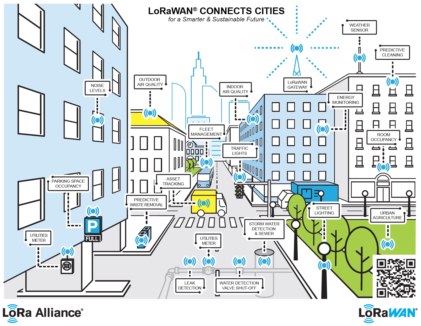 Segundo a LoRa Alliance, associação mundial de empresas apoiadoras do padrão LoRaWAN aberto para redes de área ampla e baixa potência (LPWANs) no universo IoT, para projetos que usam milhares de sensores, como acontece no caso das cidades inteligentes, a melhor escolha de para tecnologias de conectividades/ comunicação são as redes de área ampla e baixa potência (LPWANs), como o padrão LoRaWAN.