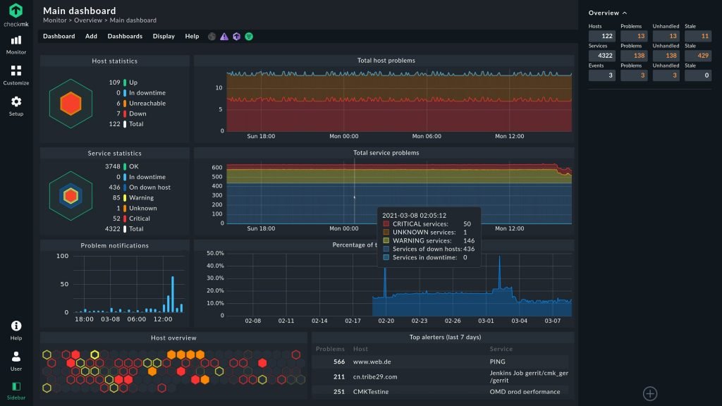 Checkmk é uma ferramenta profissional para monitorar infraestruturas, serviços e aplicativos de TI.