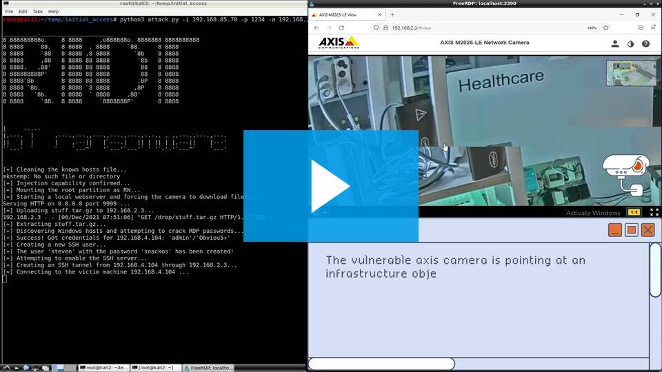 Segundo a Forescout, este é o primeiro trabalho a combinar os mundos de TI, OT e IoT e ter uma prova de conceito completa para ataques de ransomware, desde o acesso inicial via dispositivos IoT até o movimento lateral nas redes de TI para depois gerar impacto nas redes OT. Além da criptografia, a prova de conceito em equipamentos de TI inclui a implantação de software de mineração de criptografia e exfiltração de dados. O vídeo abaixo simula um ataque R4IoT a um hospital que explora uma vulnerabilidade a uma câmera IP de vídeo.