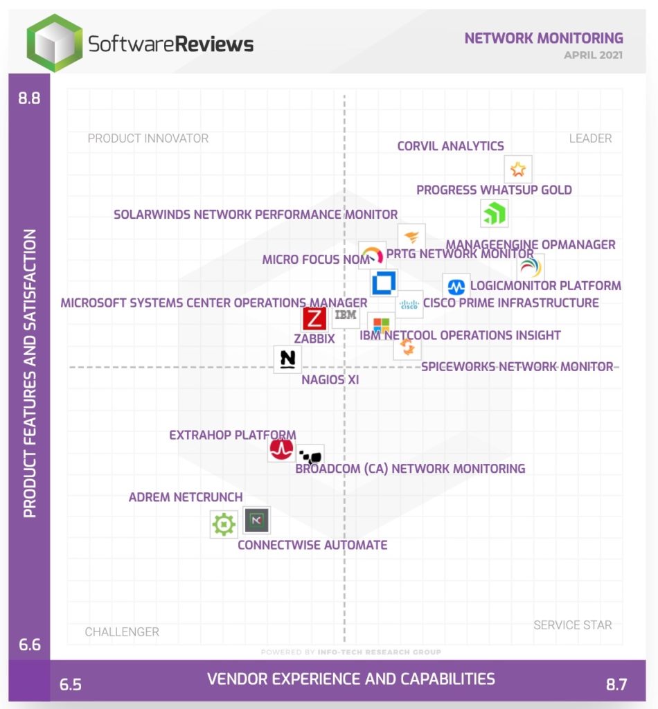 A SoftwareReviews, divisão da empresa de consultoria e pesquisa de TI Info-Tech Research Group, acaba de publicar o relatório “2021 Network Monitoring Emotional Footprint”, nomeando as melhores ferramentas de monitoramento de rede na opinião de seus usuários. As dez melhor avaliadas, entre 17, tiveram boa performance nos quesitos aquisição, implementação, serviço e suporte.